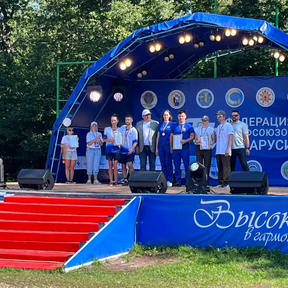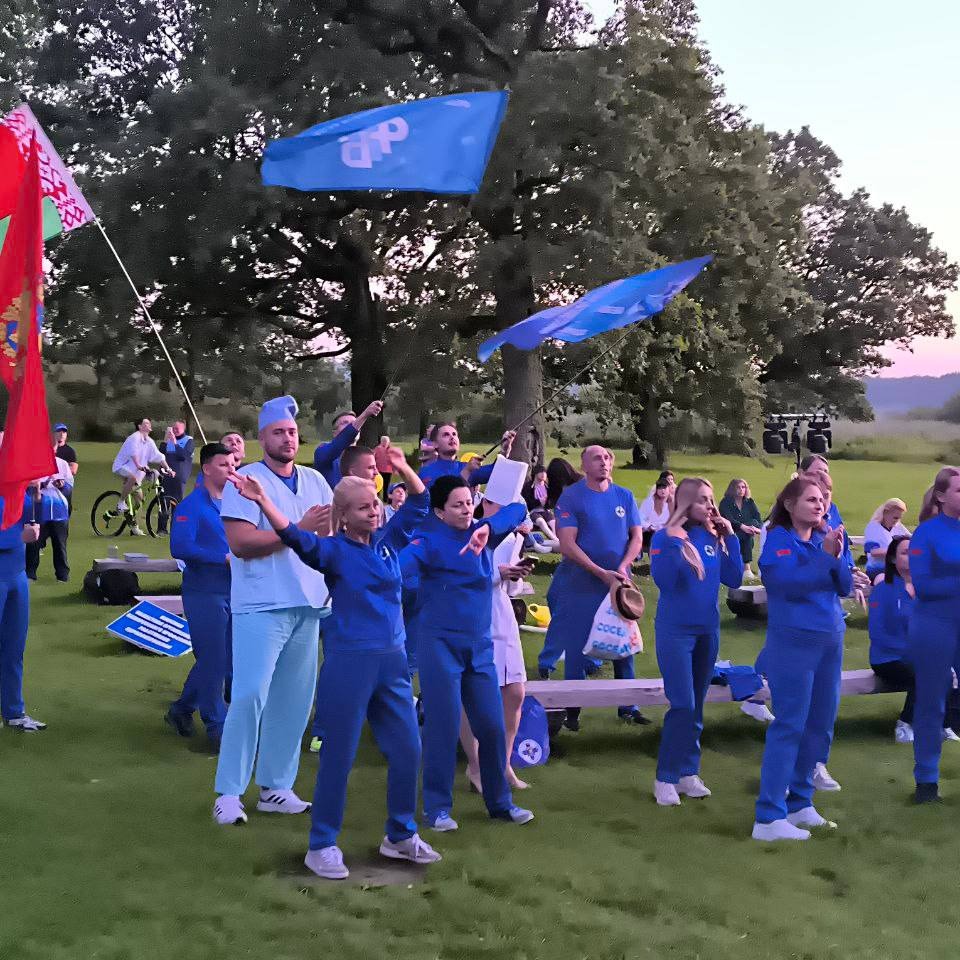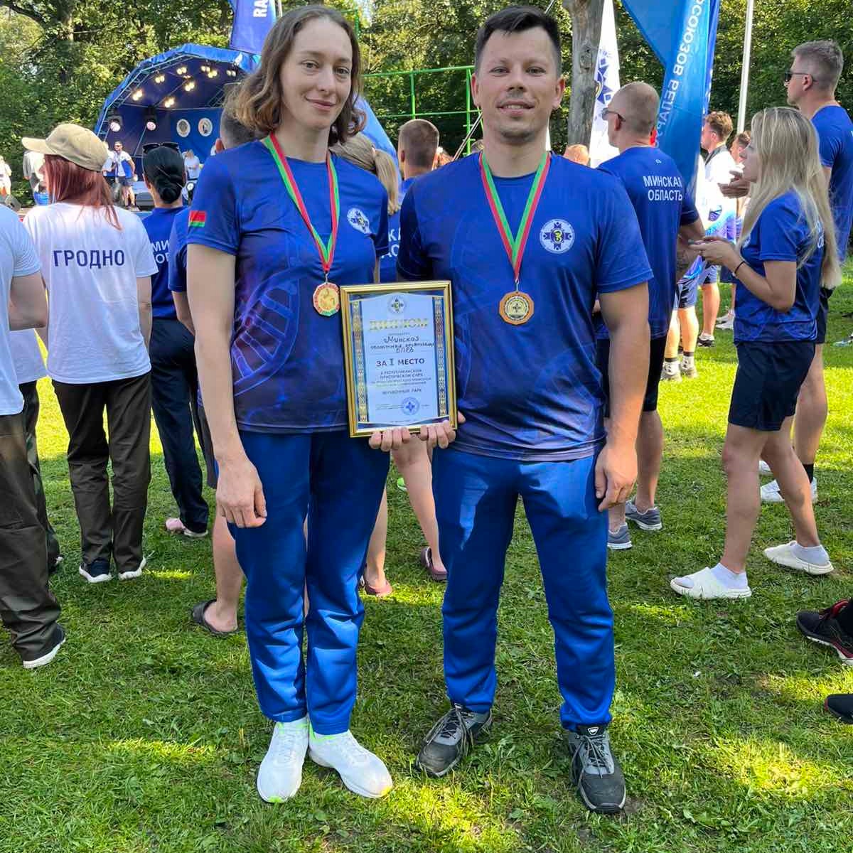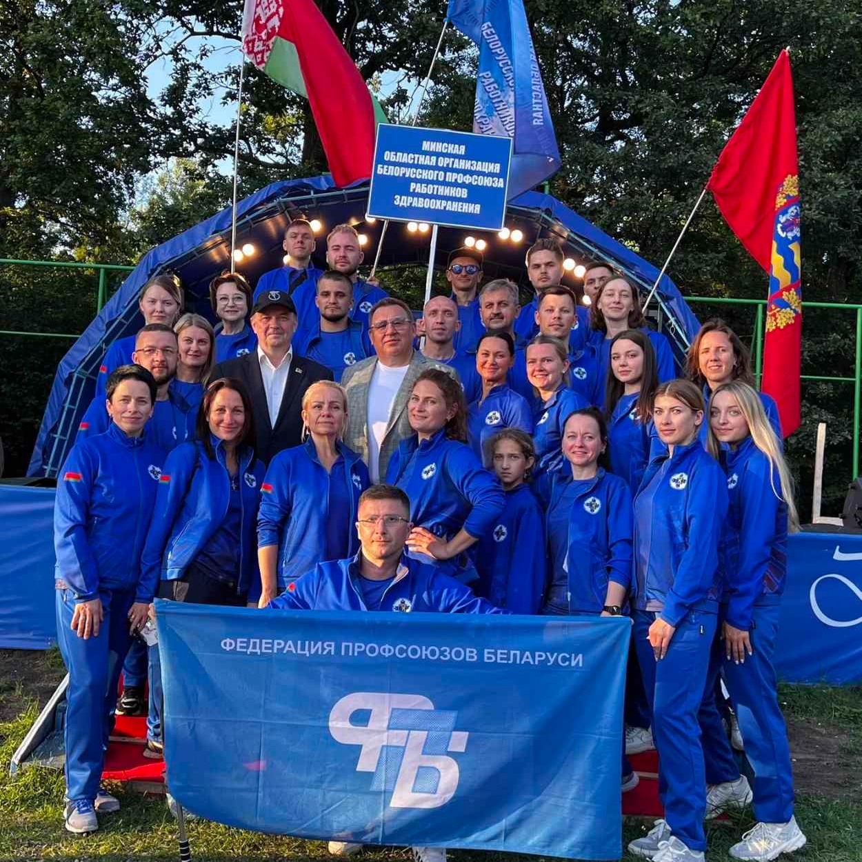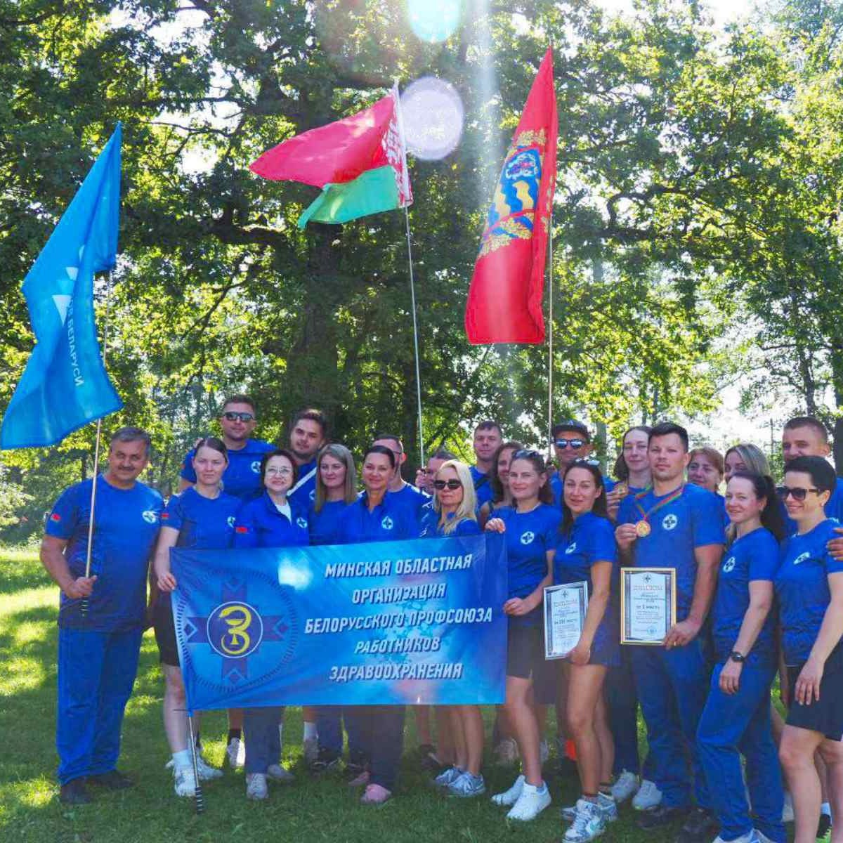 Макаревич Ольгу, медицинскую сестру операционную и Протосовицкого Владислава, врача-травматолога-ортопеда, занявших ПЕРВОЕ МЕСТО в эстафете "Веревочный городок" на республиканском туристическом слете на призы Белорусского профсоюза работников здравоохранения, проходившем на базе ТОК "Высокий берег" с 1 по 3 августа 2025 года.